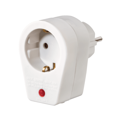 Vörös ellenőrző lámpa: jelzi a túlfeszültség elleni védelem működését Fokozott érintésvédelemmel ellátva a véletlen érintés elkerülése érdekében Az aljzatadapter védi a csatlakoztatott eszközöket a feszültségcsúcsok, a statikus töltések és a közvetett villámcsapások által okozott túlfeszültség ellen. Hálózati specifikáció: 16A Maximális csatlakoztatható terhelés: 3680W Üzemi feszültség: 250V Ha a túlfeszültség-védelem piros ellenőrző lámp