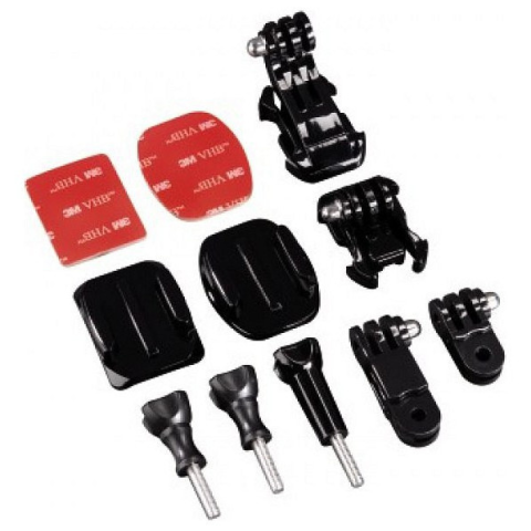 A csomag tartalma: 1db íves és 1db lapos rögzítőelem, 2db 3M tapadó, (biztos tartást ad akár esős vagy hideg időjárás esetén is), 2db könyök elem és 2 féle gyorscsatlakozó mount, 2 rövid csavar és 1db hosszú csavar.