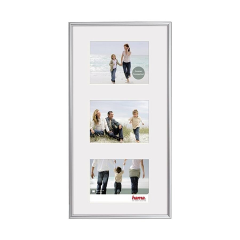 Műanyag keret, 3 db 10x15 cm-es képhezKiváló minőségű üvegRendkívül precíz illesztésekProfil szélessége: kb. 9 mmKeret mérete: 23x45 cmNagy teherbírású akasztóSzín: ezüst