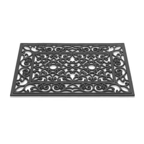 Nagyon szépen kidolgozott gumi lábtörlő inda mintázattal. I. osztályú, kiváló, hibátlan minőségű belépőszőnyegek, szennyfogók, lábtörlők. Gumiból, kókuszból és szövetből készült, kültérre és beltérre egyaránt használható anyagok is szerepelnek készletü
