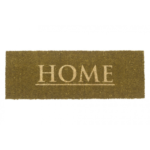 Kókusz lábtörlő, zöld színben. Festett, színezett HOME felirattal. I. osztályú, kiváló, hibátlan minőségű belépőszőnyegek, szennyfogók, lábtörlők. Gumiból, kókuszból és szövetből készült, kültérre és beltérre egyaránt használható anyagok is szerepelnek