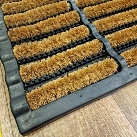 Masszív és nehéz gumi lábtörlő kókuszrost kaparó részekkel. Bel- / kültérre is rakható. I. osztályú, kiváló, hibátlan minőségű belépőszőnyegek, szennyfogók, lábtörlők. Gumiból, kókuszból és szövetből készült, kültérre és beltérre egyaránt használható a