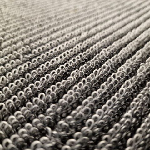 Különleges kialakítású egyedi lábtörlő. Rugalmas, hurkolt szálszerkezetű, 3D struktúrával, gumis hátoldallal. Bel- / kültérre is alkalmas. I. osztályú, kiváló, hibátlan minőségű belépőszőnyegek, szennyfogók, lábtörlők. Gumiból, kókuszból és szövetből k