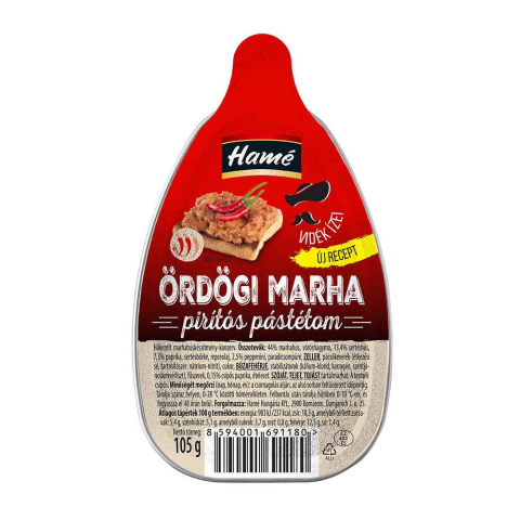 Vásárold meg most szuper áron termékünket és válogass több mint 5000 féle között! A kamraellato.hu oldalon nincs kockázat, ugyanis mindent valós magyarországi készletről szállítunk ki. Megnevezés: Hamé Ördögi Marha pirítós pástétom 105 g Összetevők: