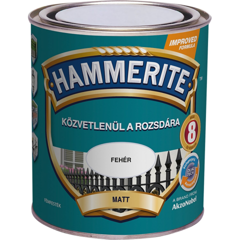 Hammerite fém védőlakk 3 az 1-ben - korrózióvédelem, alapozás és lakkozás egyben. Közvetlenül a rozsdára kenhető. Vastartalmú fémek esetében különösen jól használható. A tapadó alapozó nem vas fémeken is használható. Egyedülálló Hammerite védelmi megoldás: korrózióvizsgálattal. Ecsettel, festékszóróval és spray-vel történő felvitelre. Különböző fényességi fokozatokban és színárnyalatokban kapható.