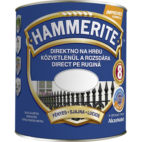 A Hammerite gátolja a kialakult rozsda elterjedését, és rozsdagátló pigmentjei extra tartós védelmet biztosítanak a felületnek. Nincs szükség hozzá alapozóra, elég 2 vastag réteget felhordani. A bevonat fényes felületet eredményez.