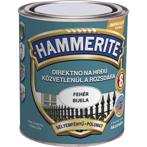 1 kép Hammerite fémfesték selyemfényű fehér 0,75 l