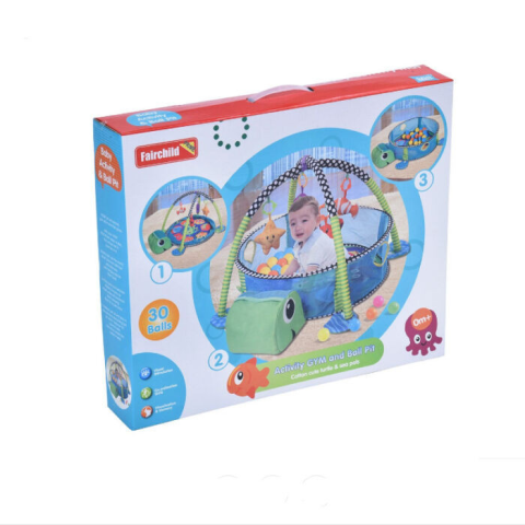 Hammy Játszószőnyeg 3az 1-ben, labdamedencével, teknőc Hammy játszószőnyeg bébitornázóval és labdamedencével - teknőc -30 db színes labdával -vidám állatos minta -puha anyagok -újszülött kortól használható