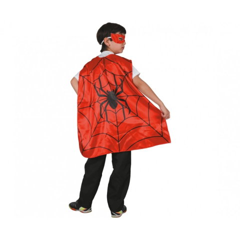 Piros színű, fekete pók és pókháló mintás köpeny és álarc. A köpeny mérete: 110-120-as. Piros színű, fekete pók és pókháló mintás köpeny és álarc. A köpeny mérete: 110-120-as. Tartozékok: 1 db köpeny, 1 db maszk