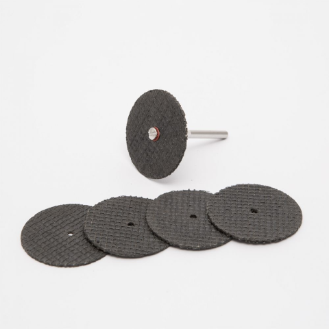 A szett tartalma: 5 db üvegszál erősítésű vágó korong 1db 3,1 mm átmérőjű rögzítő tengely Max fordulat: 28000/perc