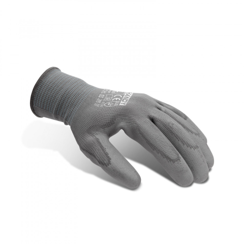 Rendkívül rugalmas, szoros illeszkedésű kesztyű poliuretán bélelt tenyérrel, nylon béléssel és rugalmas mandzsettával. Ideális általános felhasználásra. Vékony bevonata pontos tapintást tesz lehetővé, ezért olyan helyeken ahol kisméretű alkatrészekkel dol