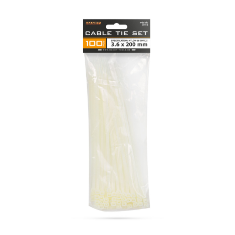 Vezetékkötegelő 200 x 3,6 mm 100 db / csomag Anyaga: Nylon 66 (94V.2) Típus: önzáró Méret: 200 x 3,6 mm Csomag tartalma: 100 db Szín: transparent
