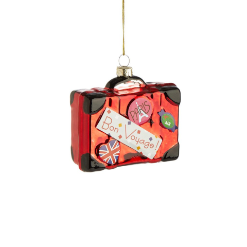 1 kép HANG ON üveg karácsonyfadísz Bon Voyage bőrönd