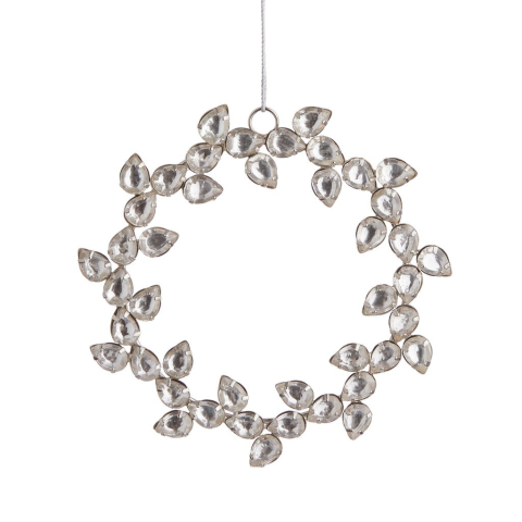 1 kép HANG ON üveg karácsonyfadísz, koszorú gyöngyökkel ?13cm