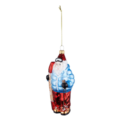 1 kép HANG ON üveg karácsonyfadísz, Mikulás sífelszereléssel