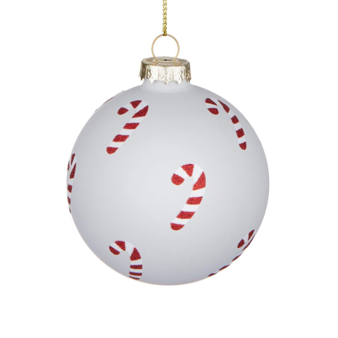 1 kép HANG ON üveggömb karácsonyfadísz, Candy Cane fehér 8cm