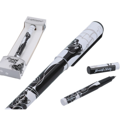 Hanipol Carmani Golyóstoll kupakkal, műanyag, fekete macskás toll termékleírás