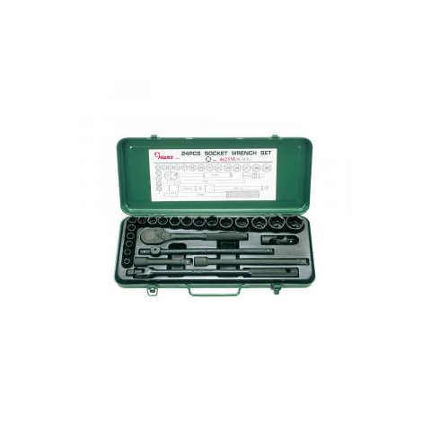 HANS 1/2" dugókulcs készlet 4625M KÉSZLET TARTALMA • dugókulcsfej: 8; 10; 11; 12; 13; 14; 15; 16; 17; 19; 20; 21; 22; 23; 24; 27; 30; 32mm • 24 fogas racsnis hajtókar: 250mm • csuklós hajtókar: 380mm • csúszó T hajtókar: 300mm • toldószár: 125; 250mm • kardáncsukló: 70mm