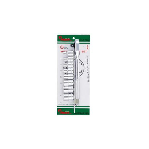 HANS 1/2" dugókulcs készlet 46139 Chrome-Vanadium 6 szögű dugókulcsfejek 8, 10, 12, 13, 14, 17, 19, 21mm méretben, 4120N racsnis hajtókarral egy csomagban.