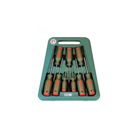 HANS TORX csavarhúzó készlet 9r. CrV • Ergonomikus kialakítású, kémiailag semleges, kétkomponensű markolat • Csúszásbiztos kivitel • Mágneses hegy • Kemény műanyag mag a penge biztos rögzítéséért • Foszfátozott hegy az oxidáció ellen és a biztos illeszkedés érdekében • Anyagösszetétel Chrome-Vanadium • Hordozható, falra akasztható szerszámtartóban • TORX: T8; T9; T10; T15; T20; T25; T27; T30; T40