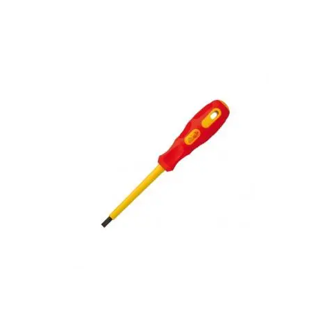 HANS Lapos szigetelt csavarhúzó CrV • Ergonomikus kialakítású, kémiailag semleges, kétkomponensű markolat • Csúszásbiztos kivitel • Mágneses hegy • Kemény műanyag mag a penge biztos rögzítéséért • VDE 1000V • A hegyig futó, teljes szigetelésű penge • Foszfátozott hegy az oxidáció ellen és a biztos illeszkedés érdekében • Anyagösszetétel Chrome-Vanadium