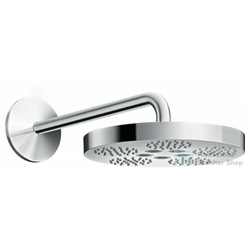 a következőkből áll: fejzuhany, zuhanykar zuhanyfej mérete: 280 mm vízsugár típusa: PowderRain és Rain kombinációban gömbcsukló: állítható fejzuhany dőlésszöge esőztető anyaga: fém zuhanykar hossza 390 mm maximális áramlási sebesség 3 bar nyomáson: 12,3