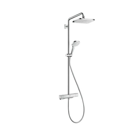 Zuhanyrendszer falra szerelhető csapteleppel. Áramlás 15 liter/perc. Lekerekített kialakítás.