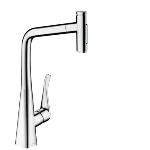 1 kép Hansgrohe Mosogató csaptelep Hansgrohe Metris kihúzható zuhannyal, 2 áram króm 73816000