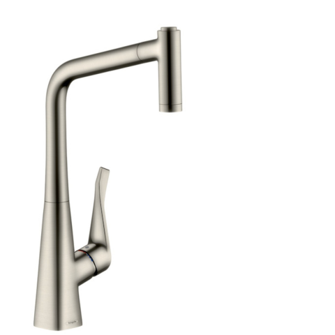 1 kép    Hansgrohe Mosogató csaptelep Hansgrohe Metris M71 kihúzható zuhannyal rozsdamentes acél megjelenés 14820800