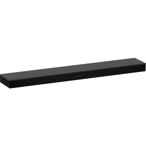Polc matt fekete színben. Ennek a Hansgrohe fürdőszobai kiegészítőnek a szélessége 50,2 cm, fémből, üvegből készült. Szerelés fúrással.