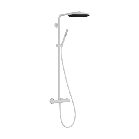 Tartalmazza a következőket: fejzuhany, kézizuhany, termosztátos zuhanycsaptelep, zuhanycső, csúszka, zuhanytömlő Fejzuhany:Pulsify 260 1jet Fejzuhany mérete: 260 mm Fejzuhany vízsugár: PowderRain vízsugártárcsa felülete: grafit Fast Drain kiüríti a fejzuh