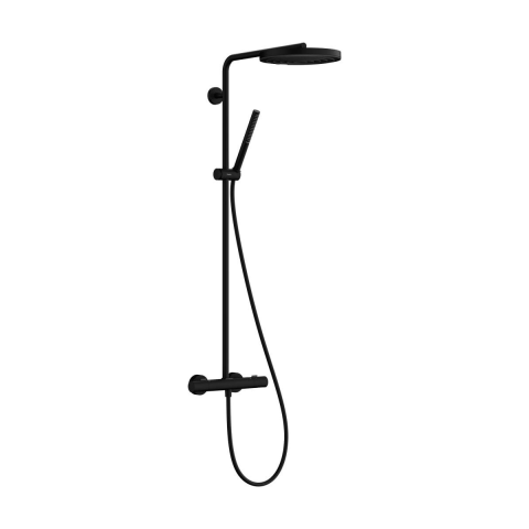 Tartalmazza a következőket: fejzuhany, kézizuhany, termosztátos zuhanycsaptelep, zuhanycső, csúszka, zuhanytömlő Fejzuhany:Pulsify 260 1jet Fejzuhany mérete: 260 mm Fejzuhany vízsugár: PowderRain vízsugártárcsa felülete: grafit Fast Drain kiüríti a fejzuh