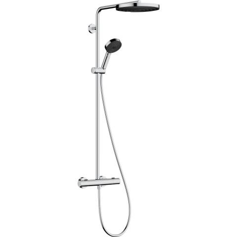 Tartalmazza a következőket: fejzuhany, kézizuhany, termosztátos zuhanycsaptelep, zuhanycső, csúszka, zuhanytömlő Fejzuhany:Pulsify 260 1jet Fejzuhany mérete: 260 mm Fejzuhany vízsugár: PowderRain vízsugártárcsa felülete: grafit Fast Drain kiüríti a fejzuh