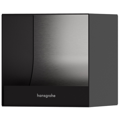 WC-papír tartó matt fekete színben. Ennek a Hansgrohe fürdőszobai kiegészítőnek a szélessége 19,8 cm, és rozsdamentes acélból készült.