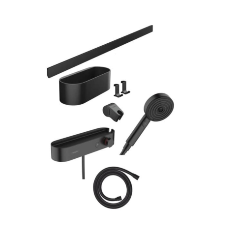 1 kép Hansgrohe Zuhanyrendszer Hansgrohe WallStoris termosztatikus csapteleppel matt fekete 24250670