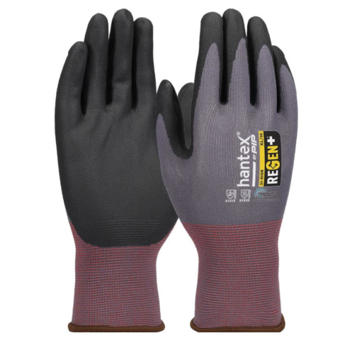 HANTEX REGEN kesztyű – fenntartható védelem a mindennapi munkáhozA HANTEX REGEN kötött, nitrilhab tenyérmártott munkavédelmi kesztyű 15-ös kötési sűrűséggel, 51%-ban újrahasznosított poliészterből készül, így fenntartható, kényelmes és jól szellőző védelmet nyújt nedves és száraz környezetben.Főbb jellemzők:Bevonat: nitrilhab – kiváló tapadás és légáteresztésKialakítás: 15G kötés, 19 g CO2-megtakarítás páranként, újrahasznosított alapanyag