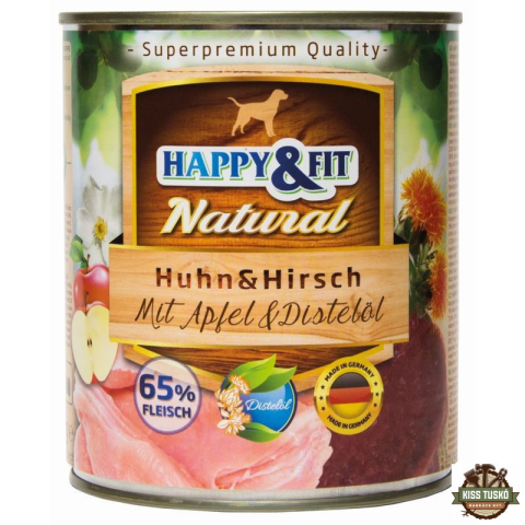 Teljes Happy&Fit Natural Dog Konzerv Csirke & Szarvas Almával & sáfrányolajjal 800g termékleírás