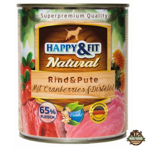 Teljes Happy&Fit Natural Dog Konzerv Marha & Pulyka Áfonyával & Sáfrányolajjal 800g termékleírás