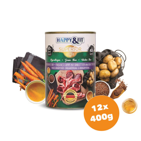 Happy&Fit Superior Dog Konzerv Friss Bárányhús Srépával, burgonyával 12x400g kutyaeledel termékleírás