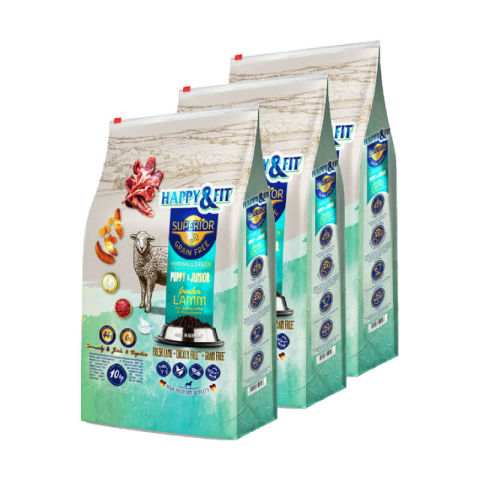 Happy&Fit Superior Hipoallergén GF Puppy&Junior Friss bárány, édesburgonyával 3x10kg kutyaeledel termékleírás