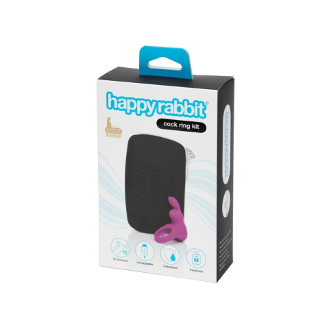1 kép happyrabbit Cock Kit - vibrációs péniszgyűrű tárolótáskával (lila)