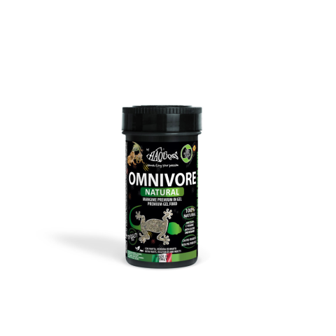A Haquoss OMNIVORE NATURAL egy 250 ml-es természetes táplálék mindenevő hüllők számára. Tartalmaz fehérjét, gyümölcsöket, zöldségeket, ásványi anyagokat, vitaminokat, kalciumot, probiotikumokat és aminosavakat, melyek erősítik az immun- és emésztőrendszer