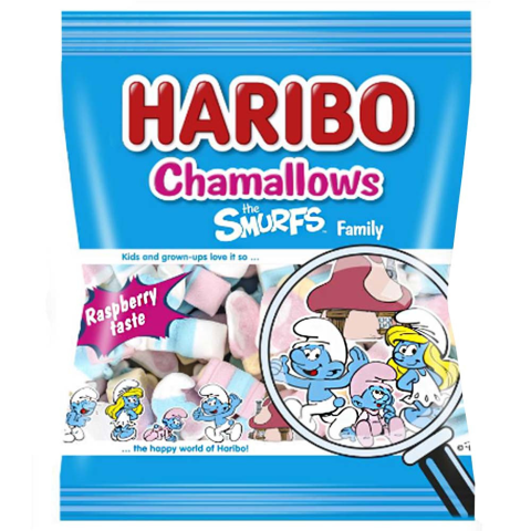 Haribo Chamallows Smurfs Family habcukorkaKészülj fel egy vidám kalandra a Hupikék törpikékkel a Haribo Chamallows SMURFS Family
