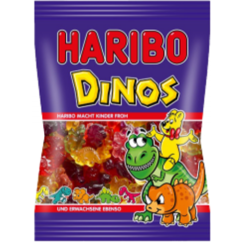 Haribo dinosaurus alakú gyümölcsízű gumicukrok.         Súly: 100g