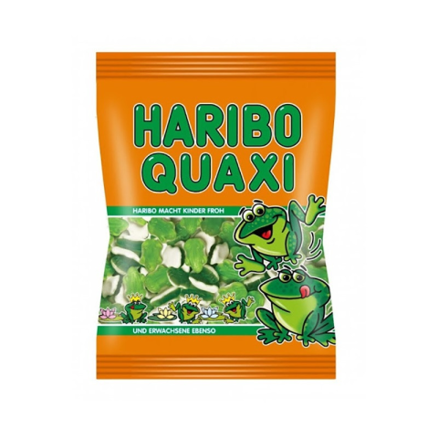 Quaxi gyümölcs ízű gumicukorka 100gr. Összetevők: Glükózszirup, Cukor, Dextróz, Zselatin, Étkezési sav: citromsav, Gyümölcs- és növényi sűrítmények: spirulina, sáfrányos szeklice, alma, Fényezőanyagok: fehér és sárga méhviasz, karnaubaviasz, Aroma, Invertcukorszirup.