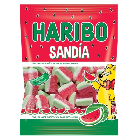 Sandia A HARIBO Sandia édes felüdülés nem csak nyáron. Nincs benne mag, nem kell hozzá kés és még behűteni sem kell. Élvezd bármikor a három rétegű, dinnye ízű csemegét! ÖSSZETEVŐK: Gyümölcsízű gumicukorka Cukor; glükózszirup; nedvesítőszer: szorbitszirup