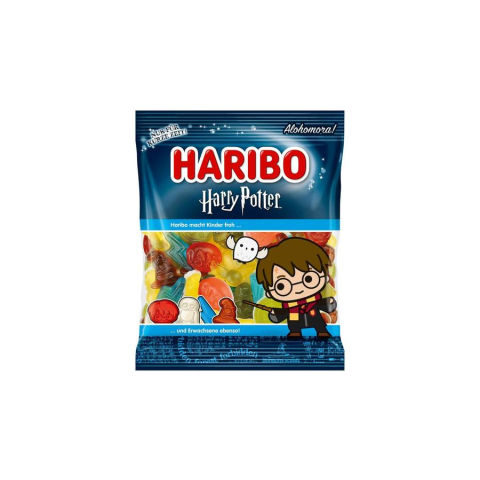 Harry Potter kínálja a Haribo varázslatos gyümölcsös gumifiguráit ebben válogatásában. A csomagoláson Harry Potter misztikus figurája látható.