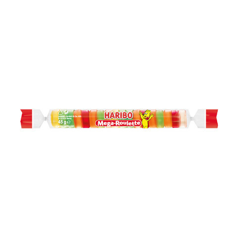 Haribo Mega-Roulette 45 g Fedezd fel a színkavalkád és gyümölcsíz élményét ezzel a praktikus, 45 g-os kiszerelésű Haribo Mega-Roulette-szel. A klasszikus Haribo minőséget és a roulette játékos formáját ötvözi egy mosolyt csaló nassolnivalóban, amelye