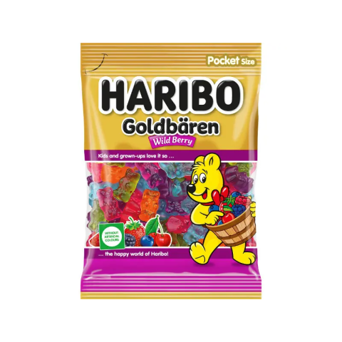 Haribo Goldbears Wild Berry – 80 g Rövid leírás A Haribo Goldbears ikonikus zselés gumicukor egyedi Wild Berry változata, amely erdei bogyók ízvilágát hozza el egy könnyen nassolható formában. A 80 g-os kiszerelés praktikus, bárhol és bármikor élvezh