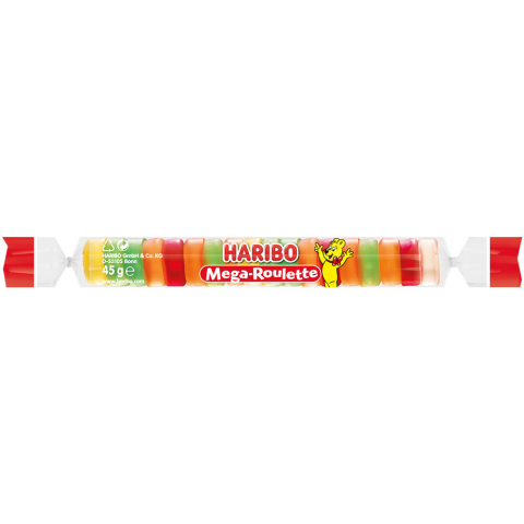 Vásárold meg most szuper áron termékünket és válogass több mint 5000 féle között! A kamraellato.hu oldalon nincs kockázat, ugyanis mindent valós magyarországi készletről szállítunk ki. Megnevezés: Haribo Mega-Roulette gyümölcsízű gumicukorka 45 gÖssz